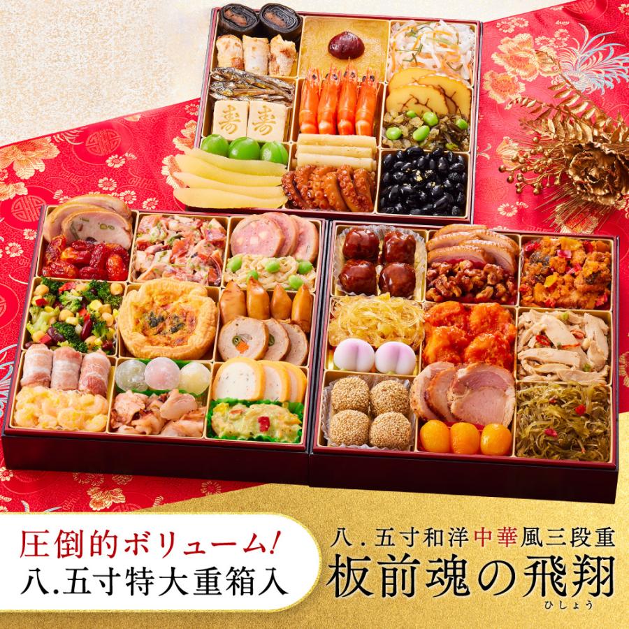 八.五寸和洋中華風三段重「板前魂の飛翔」