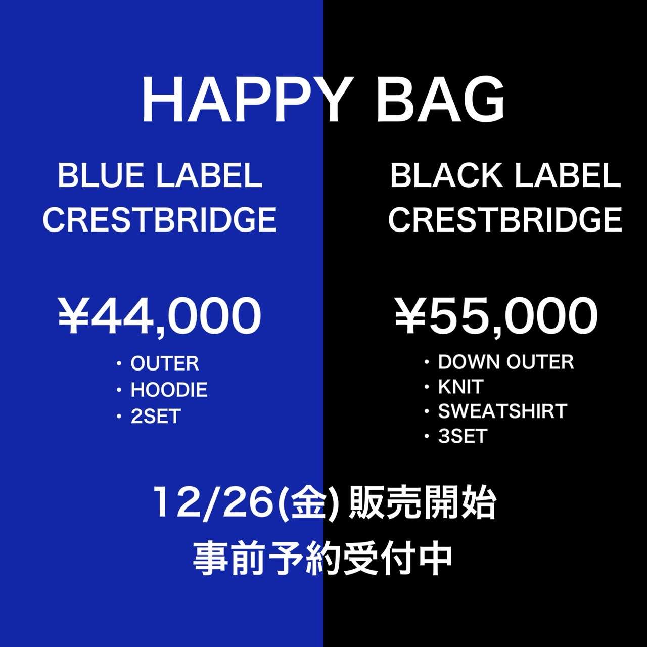 こちらは、「BLUE LABEL / BLACK LABEL CRESTBRIDGE」の福袋です。
