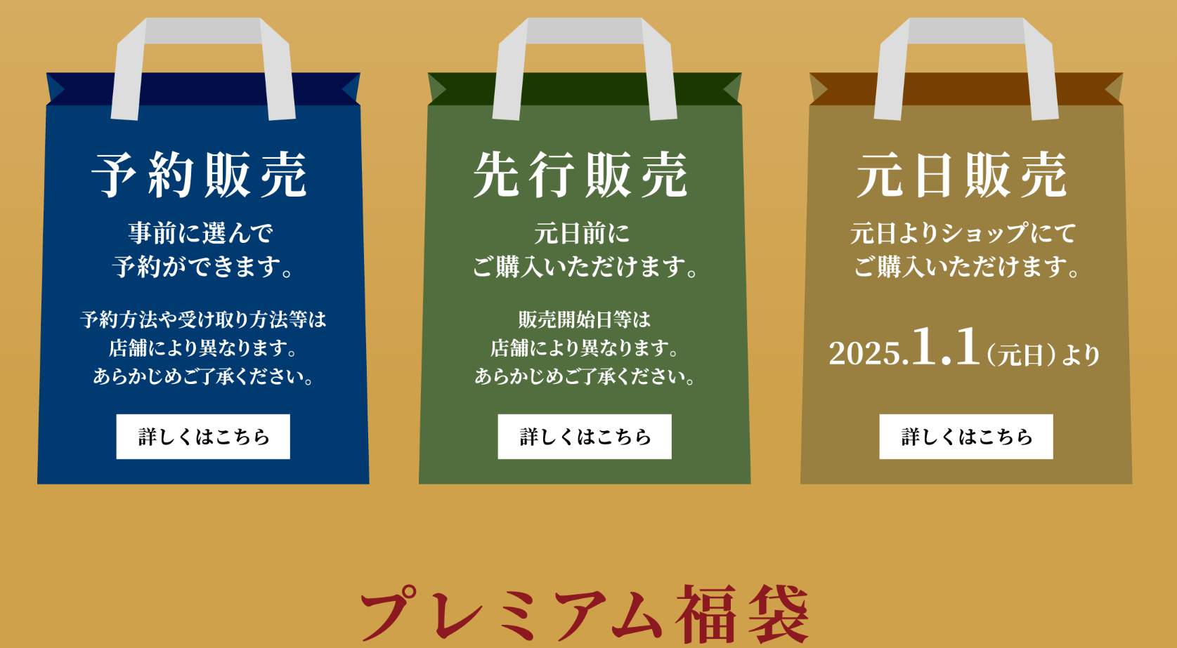 予約販売と先行販売、元日販売に分かれており、冬theバーゲンよりも早い時期から予約が開始されていました。
